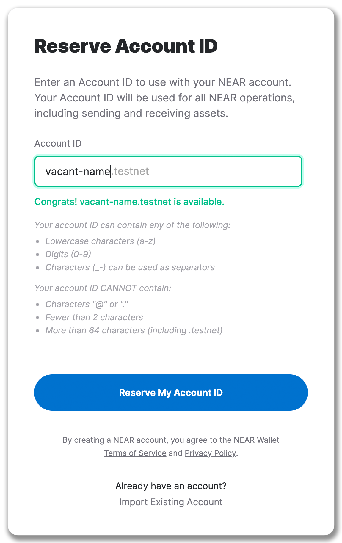 When a user signs up for a testnet account on NEAR Wallet, they'll see this:
